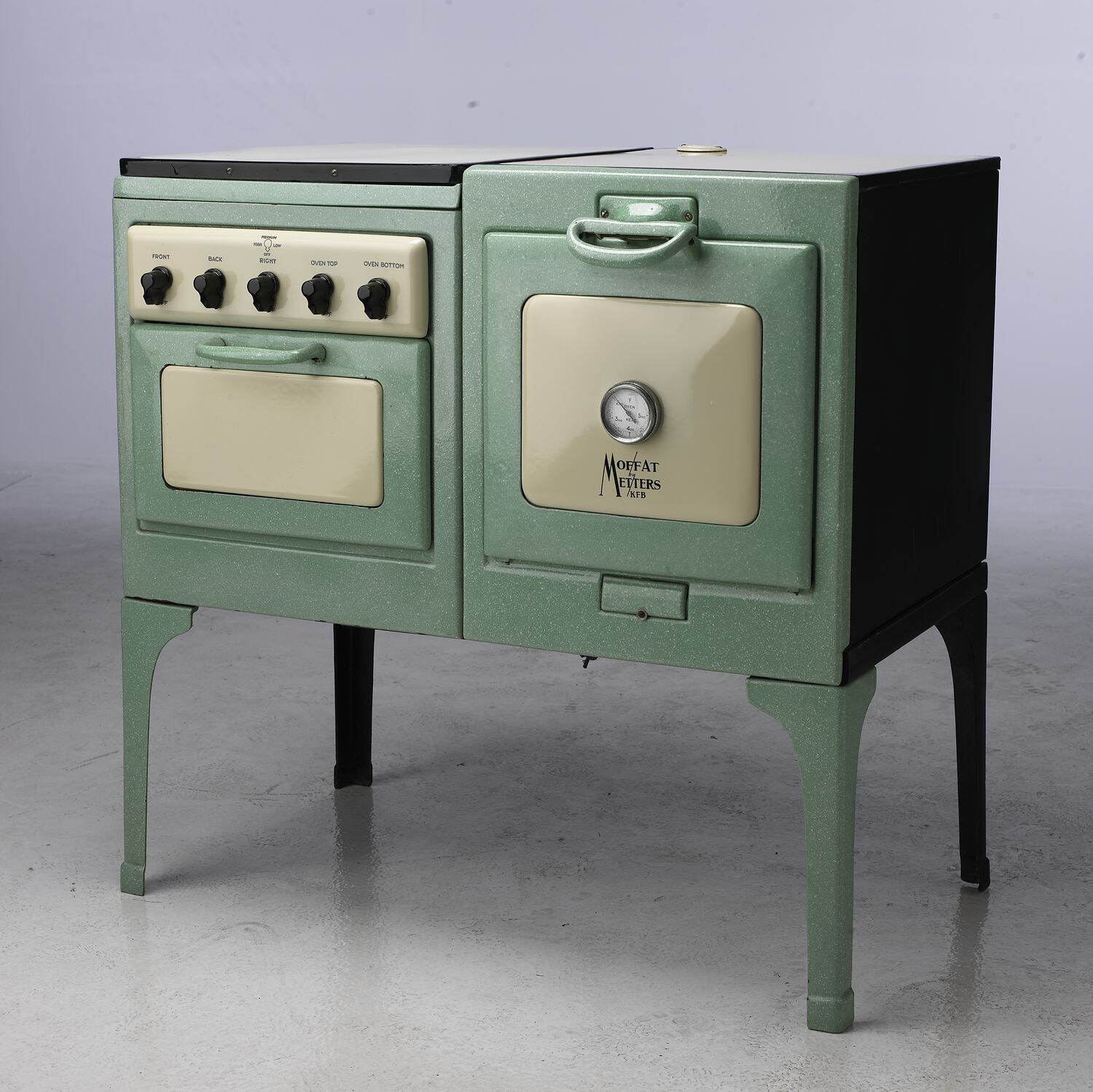 This Metters-Moffat electric stove was purchased by the donor's mother-in- law, Alys Hearne, around 1937. Alys Hearne was a modern woman of means who was an early adopter of domestic technology. She already owned an early fridge and a mix-master and decided to update her gas stove with a new top- of-the-range electric stove. Alys was married to Oswald Charles Hearne who was a very wealthy business- man. He was also Mayor of Geelong three times. The family business produced and sold cough medicine products known as Hearne's Bronchitis Cure. The most popular product was the No. 7 mixture which contained morphine. The Hearnes lived in a large mansion on the Geelong waterfront at 53 The Esplanade North Geelong and had 2 servants: a cook and a housemaid. Because she had a cook Alys Hearne never cooked meals herself but did like to bake scones for pleasure. Apparently her first round of scones baked in the new electric stove did not work out, possibly because she was not used to baking with an electric heat source. After this Alys decided never to use the electric stove again and would not even allow her cook to use it. Mrs. Hearne's refusal to use this expensive new appliance was described by her son-in-law as extravagant. This could be seen as particularly so in the 1930s depression era when even a basic electric appliance was a real luxury for many. The abandoned electric stove stood, unused, side by side with the gas stove in the Hearne's kitchen for over 40 years until the early 1980s when it was used one last time. The Hearne's daughter and her husband (the donor) were by then the occupants of the house and were hosting a party there. The caterers needed more cooking appliances and even though the stove had not been used since the 1930s it was switched on and worked perfectly. In the mid 1980s the kitchen was remodelled and the stove was removed and placed in storage at the Hearne's house where it sat until December 2001 when the donor sold the house and moved out.
