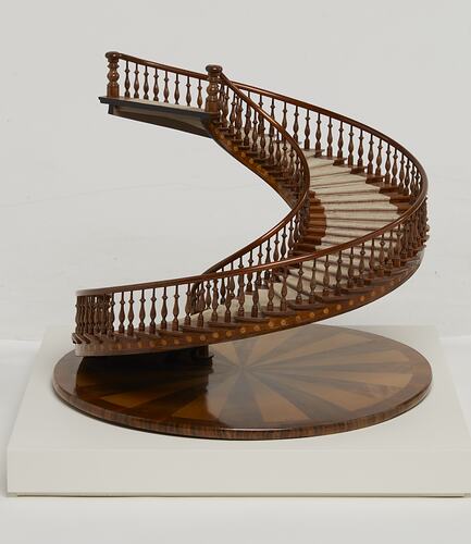 Model of a curved wooden staircase with balustrades made by Albert Trapp, Williamstown, 1878.