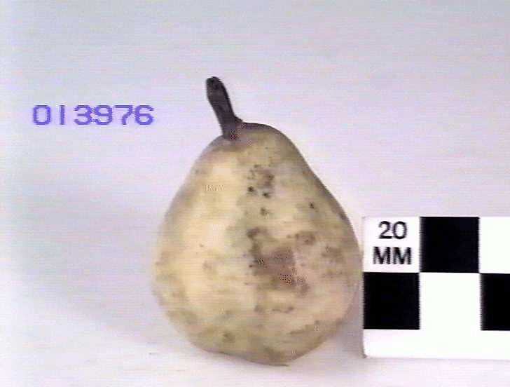 Wax model of Vineuse pear. This variety is not in the 1974 edition of Ikin's listing of fruits.