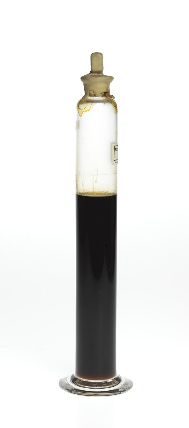 Crude oil sample of Eucalyptus baileyana, also known as rough stringybark, black stringybark. Distilled from New South Wales material, pre 1922.