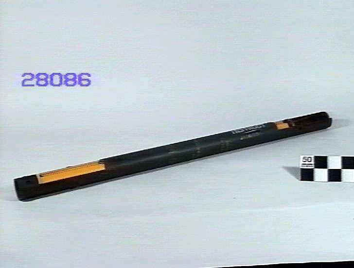 Rocket motor for 3-inch aircraft rocket projectile. Comprised of a metal tube, sectioned to show filling and propulsion unit with black electrical cord. Painted dark green with two red bands and marked 'M.R. A/C 3 IN. NO1. MK 5 (AUST.) BTM 5. 7-64'. Purchased from the Department of Supply in 1970.