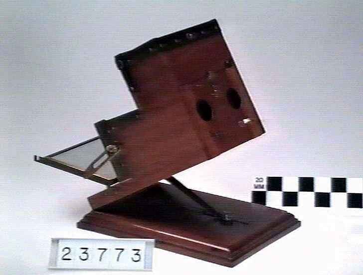 Krõmskõp viewer used to view kromograms to produce a colour image. These were the World's first colour images; the images were not fixed and could only be seen through the viewer.
