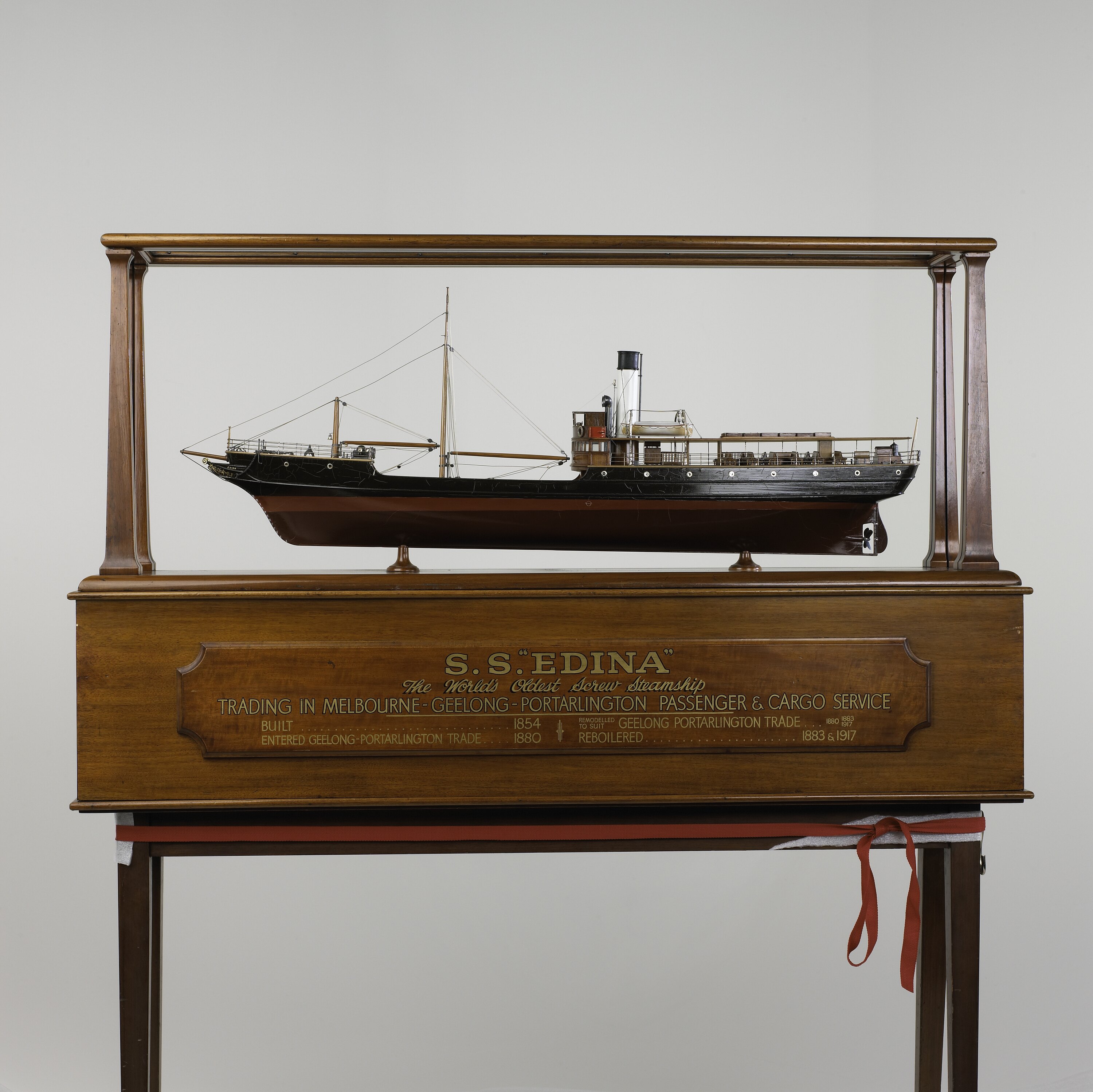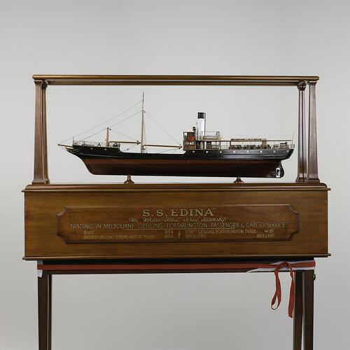 This model of the 'Edina' shows the vessel after her 1917 refit. It was donated to the Museum in 1990 by the State Library of Victoria.
