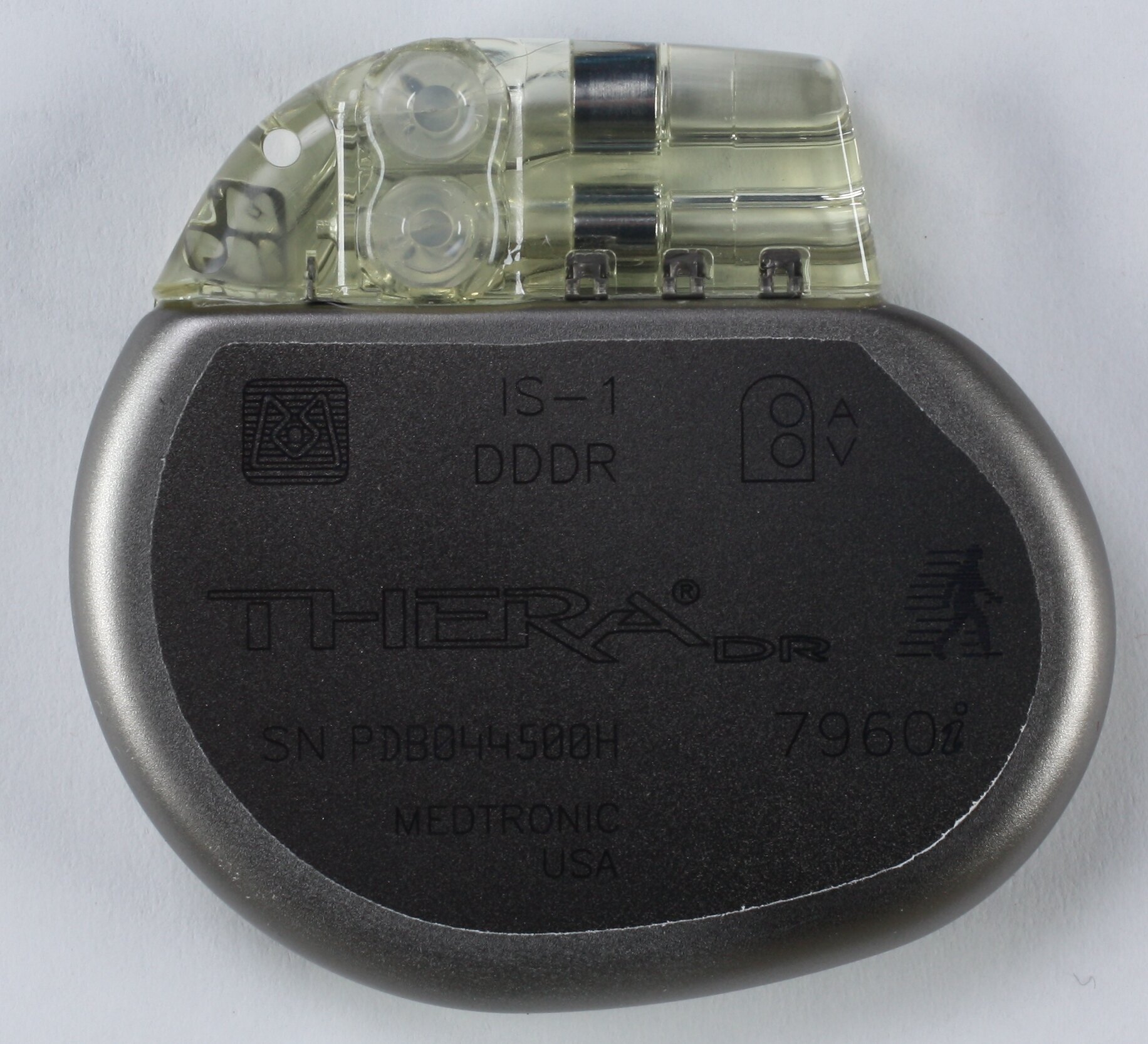 Text on front: "IS-1/DDDR/THERA/SN PDB044500H 7960/MEDTRONIC/USA"