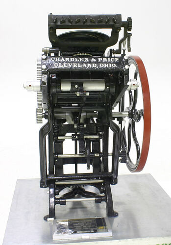 This letterpress platen was manufactured by Chandler and price, Cleveland, Ohio, USA between 1903 and 1904.