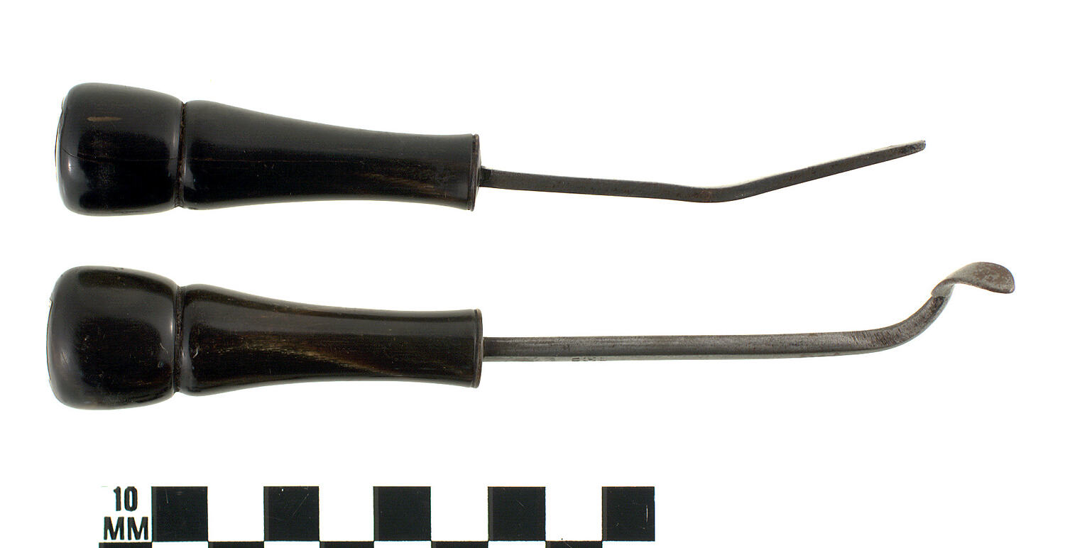 Two opium spatulas with horn handles, circa 1900s-1930s. Opium use was widespread in China between the 17th and 19th Centuries with the British East India Company importing large quantities of the drug. Chinese attempts to ban the opium trade and resistance against the foreign intervention it represented culminated in the Opium Wars of the early to mid-19th Century when force of arms ensured that Chinese ports remained open to opium.