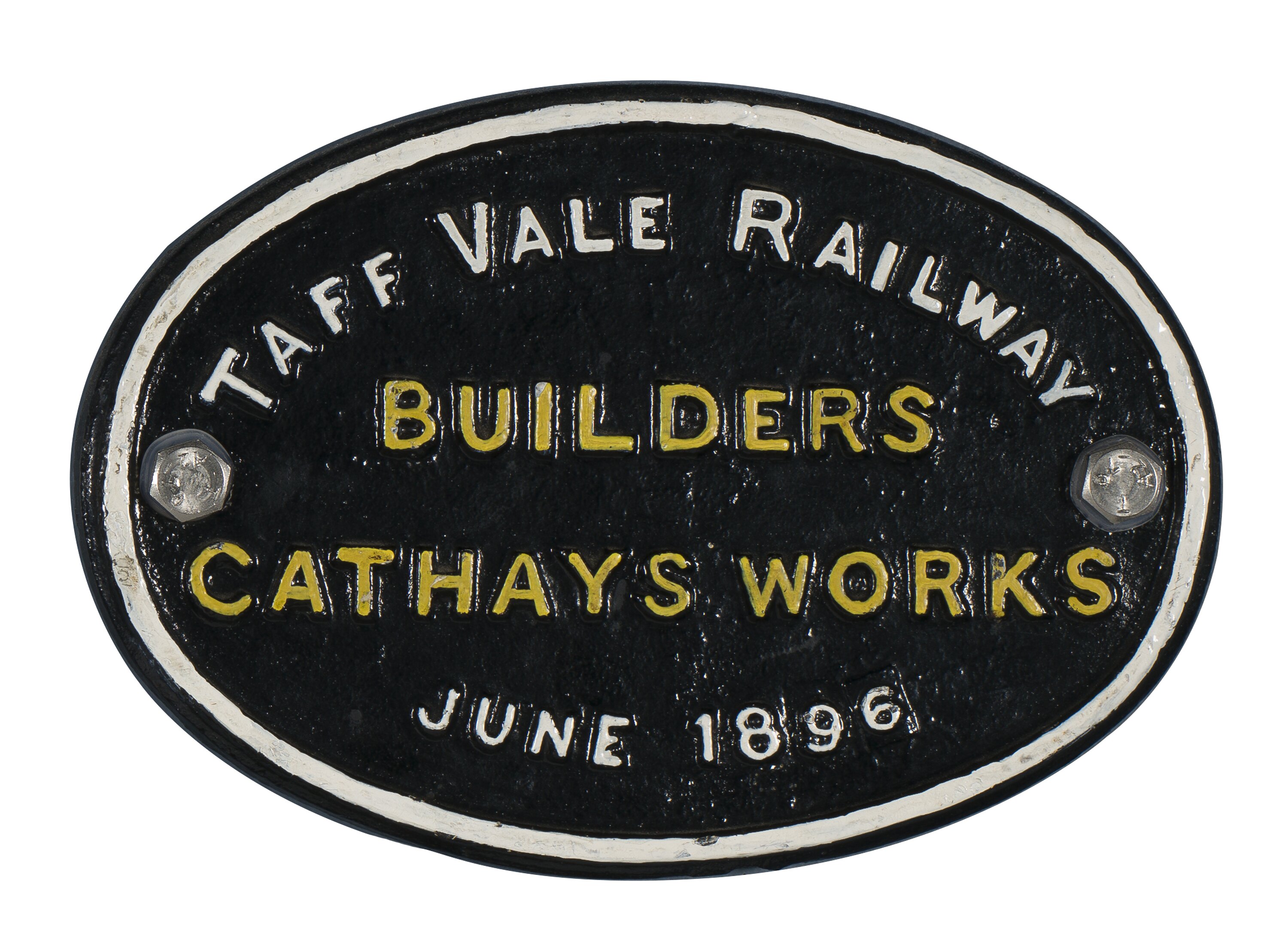Cast iron oval locomotive builders plate, manufactured by Taff Vale Railway, Cathays Works, Cardiff, Wales, June 1896.