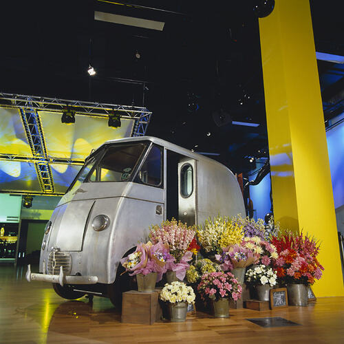 Prototype for a small delivery vehicle, constructed in 1947 at the Commonwealth Aircraft Corporation (CAC) factory at Fishermans Bend, Victoria. It was powered by a modified 597cc BMW twin-cylinder motor cycle engine believed to be sourced from a BMW R66 motorcycle. With World War II ending in 1945, orders for military aircraft were greatly reduced. The delivery vehicle project could utilise the aircraft manufacturing technology and materials already in the factory. CAC also began producing pressure-cookers and bathtubs in the post-war years.