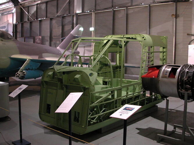 The Museum has the unskinned front fuselage section of an unidentified GAF-built Nomad. The fuselage section is of conventional semi-monocoque construction with frames and stringers of aluminium alloy 2024 painted in a primer-coat. The fuselage section was obtained by the Museum from GAF in 1982 as Nomad production wound down. It was described as a "scrap" section by GAF and is apparently an un-used production spare. The Museum acquired the fuselage as an example of modern metal aircraft structure.