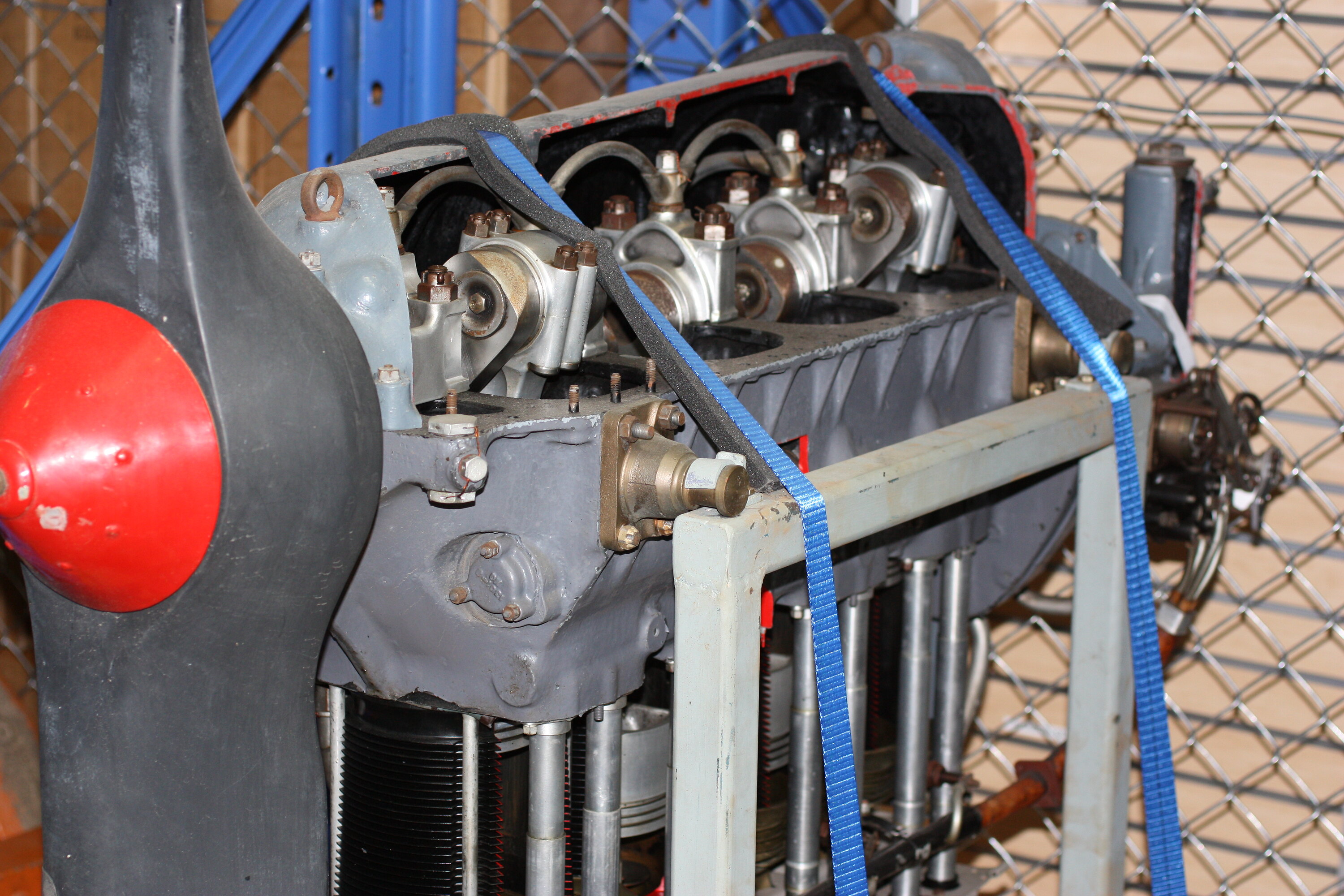 The Museum's Gipsy Major Series II engine (serial no. 9038) was built by the De Havilland Engine Co Ltd in the United Kingdom and delivered to Australia in September 1939. In late September 1939 it was issued to de Havilland Australia and fitted to Tiger Moth A17-17 during production in Sydney. The fuselage for this aircraft had also been built in the UK. Tiger Moth A17-17 served with No. 2 Elementary Flying Training School based at Archerfield in Queensland. Engine no. 9038 was removed from A17-17 in May 1941, receiving a complete (180 hour engine time) overhaul at Aircrafts Pty Ltd, Archerfield and was later fitted to Tiger Moth A17-16. The engine was transferred to the Museum by the RAAF in 1946. It later sectioned for display purposes.