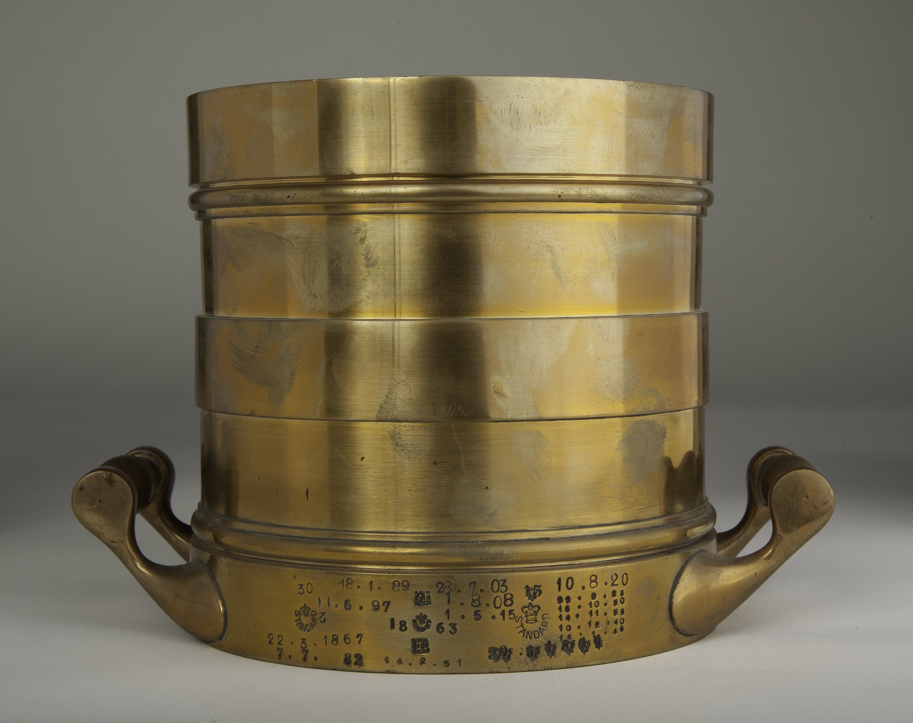 Originally used by the Customs Department as the Imperial standard measure for Victoria. Transferred to Melbourne Observatory in 1902 when the observatory took over responsibility for administering primary standards of weights and measures for Victoria. Subsequently used by the Weights and Measures Branch when the Observatory closed in 1944.