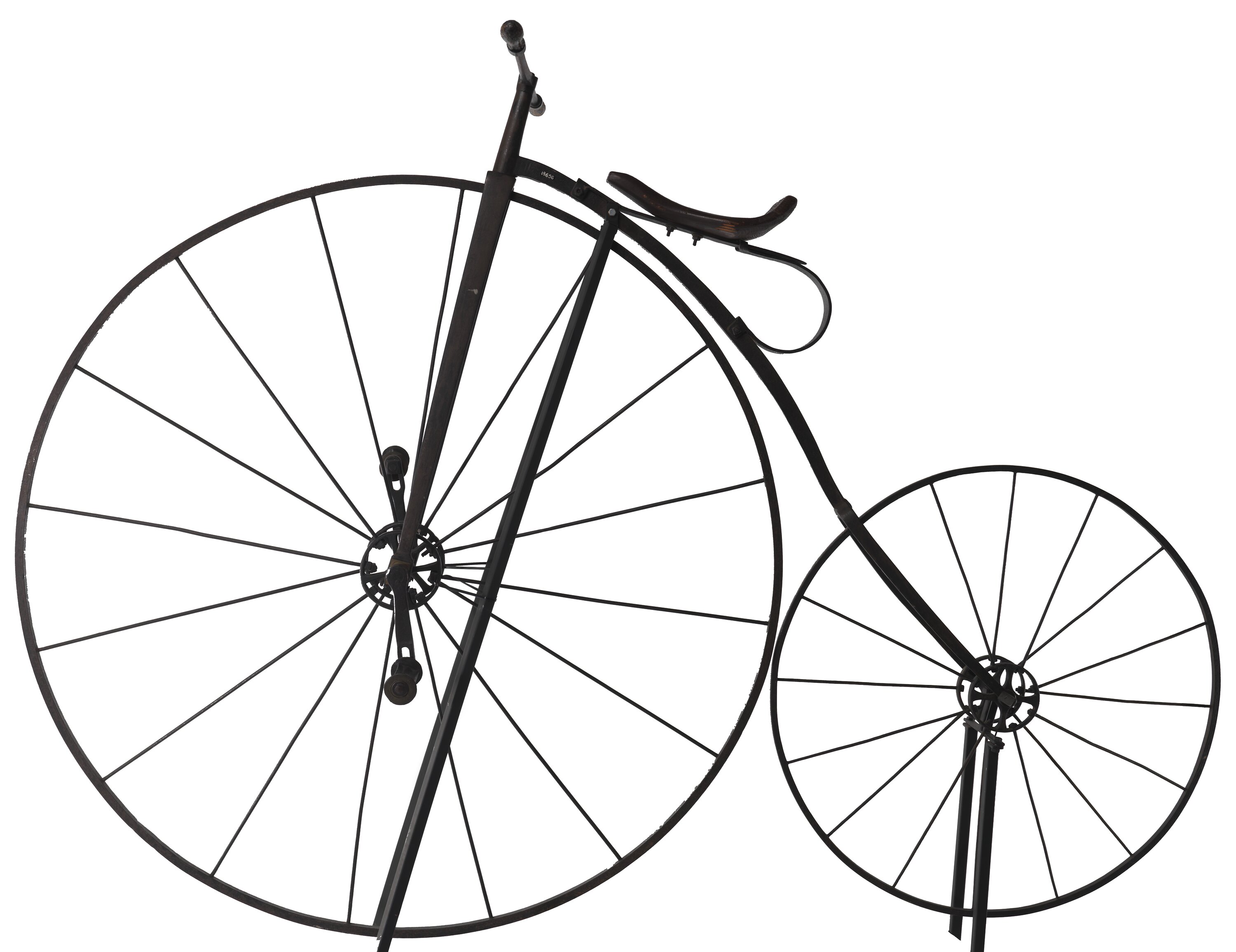 High wheel bicycle, made circa 1872 in the workshop of John James, blacksmith & coachbuilder, Ballarat East. Used for racing and leisure.