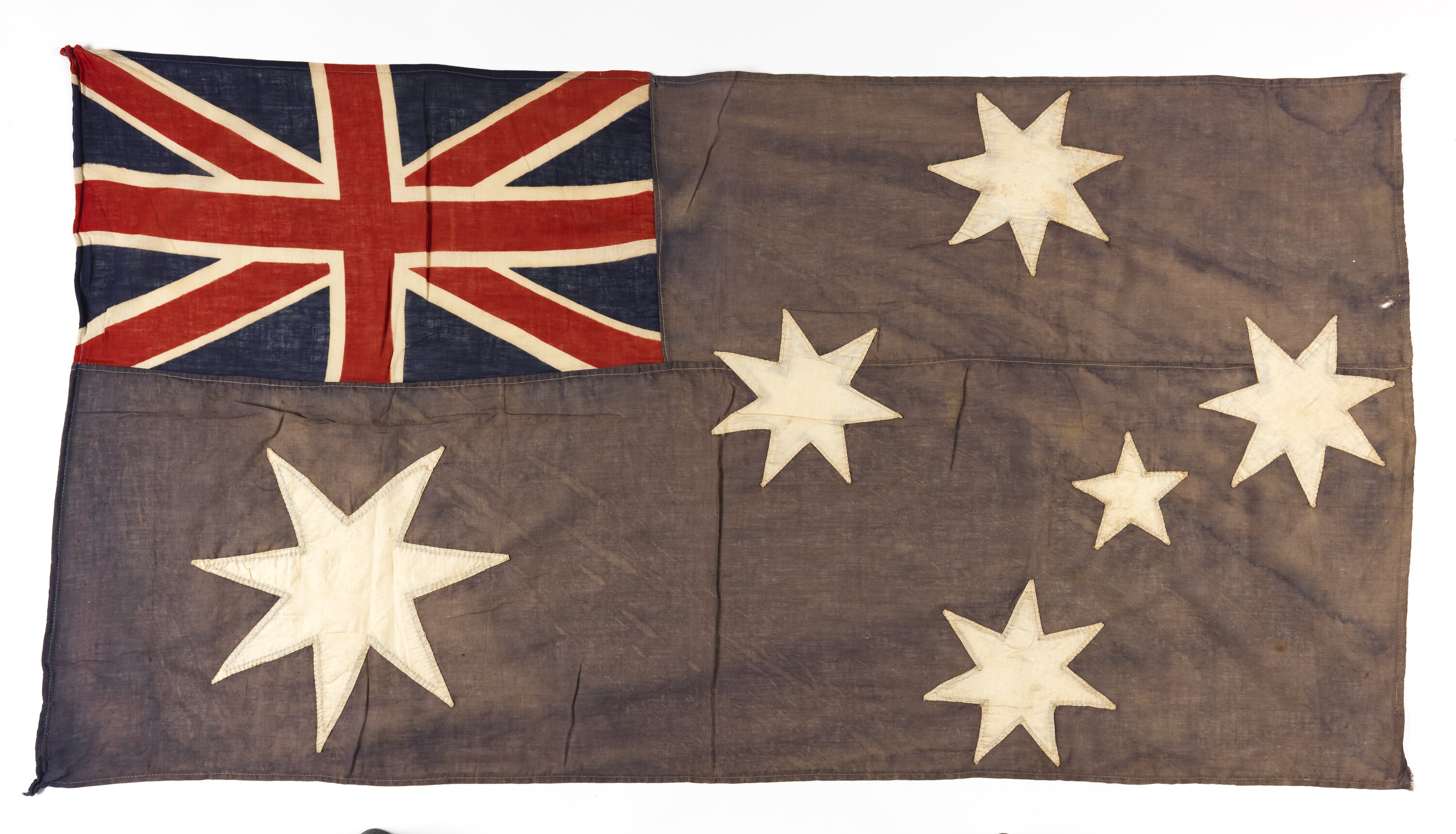Australian flag that belonged to Stoker William Sorell. Sorell served on H.M.A.S Melbourne during World War I.