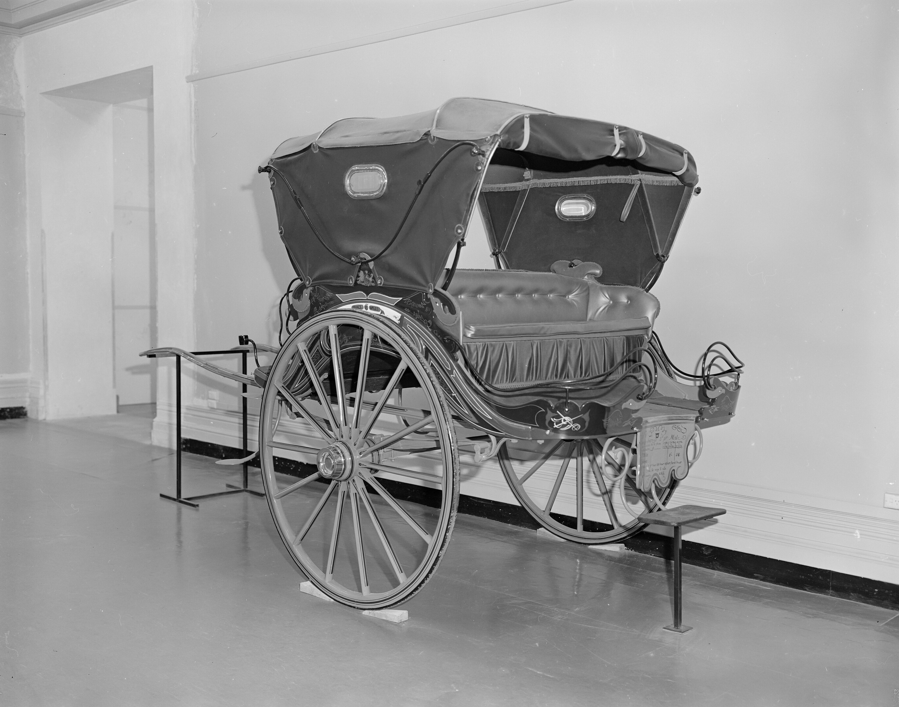 This vehicle was originally owned and operated by the donor's uncle, Mr Thomas D. Phillips, of Peel Street, Prahran, a cab proprietor of many years standing. He did not ply for hire but had a number of regular customers. References to this type of vehicle and Thomas D. Phillips are given in the "History of Prahran", by J.B. Cooper, 1924, p.147. It is reputed to have carried the Prince Consort as a passenger during his visit to Victoria in 1867 and was subsequently named "Prince of Wales" in his honour. Most of Melbourne's Albert Cars were given individual names which were painted on the vehicles.