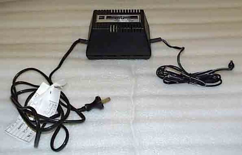 Power supply to convert 240 volt to 8.5 volt for use with a printer, in this case with an Atari 1027 printer. The Atari 800 system was a series of components with a television set that functioned together as a single system. Components included a computer console, program cassettes and program recorder.