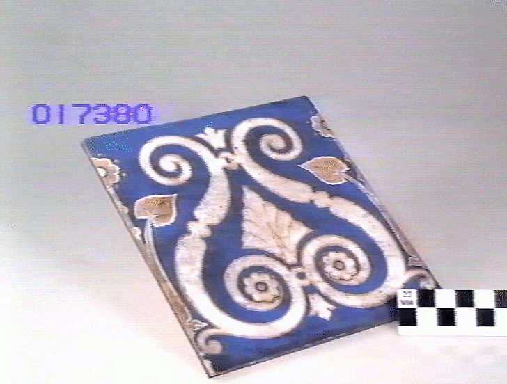 This glazed ornamental wall tile was manufactured at Minton's China Works in Stoke-on-Trent, England. It was exhibited by Minton Hollins & Co at the 1880 Melbourne International Exhibition; the company was awarded a gold medal for its display of 'Tiles, Encaustic, Plain and Artistic'.