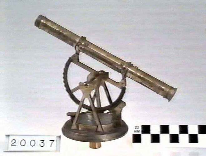 Dial has scales for horizontal and vertical measurement as well as a thirteen inch telescope. Manufactured by W. Watkins in Bristol, England, circa 1860.