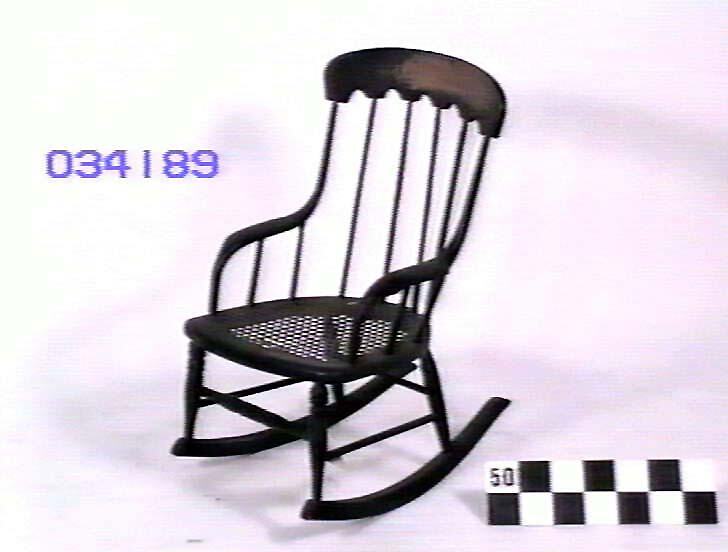 Child's wooden rocking chair with cane seat. Initial information indicated it was made in England in 1840 and brought to Australia by Captain George Wadsworth for his daughter Elizabeth. However, according to a family member who visited Scienceworks in 1995, the chair was made by a convict in Longford, Tasmania. Elizabeth was born in Longford in 1868. (More detailed information about the chair and the family can be found in the supplementary file at Museum Victoria.)