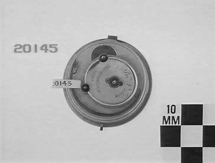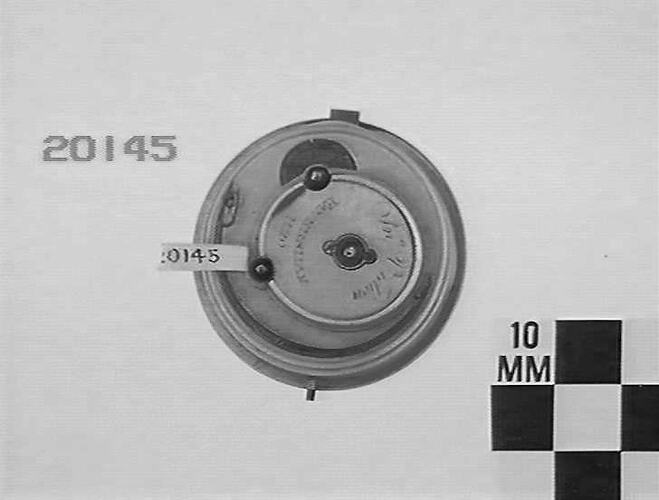 One of several watch movements donated by Ingram Brothers jewelers in 1937. During the 1930s Depression, customers would bring in gold or silver fob watches to sell for the value of the gold or silver. Ingrams (and other jewelers) melted down the cases to sell the metal, but kept the movements of historically interesting watches.