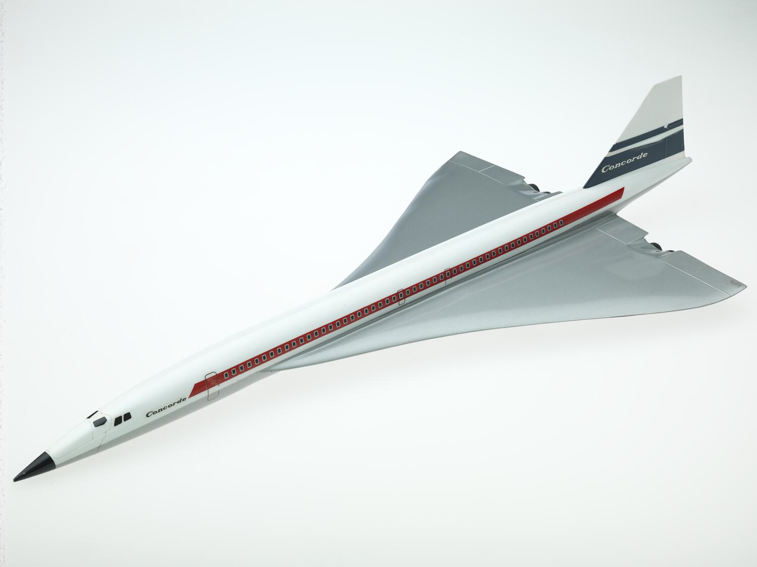 This scale factory model is mounted on a metal stand with a coloured globe of the world. It was donated to the Museum by Mr Graeme Swartz in 1994. The donor's father was The Hon. R.W.C. Swartz, Minister for Civil Aviation from 1966 to 1969. The model is believed to be a gift from the joint Anglo/French manufacturers who were hoping to secure orders from Qantas for Concorde in the late 1960s. Qantas had an option to purchase Concorde and evaluated the aircraft but chose not to order it.