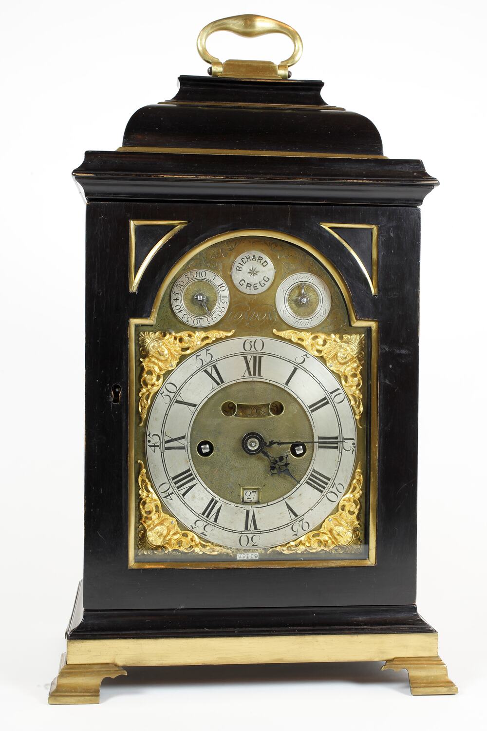 Bracket clock, Richard Gregg, London, circa 1750. 8 day striker, strikes on a bell.