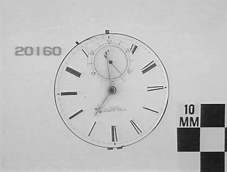 One of several watch movements donated by Ingram Brothers jewelers in 1937. During the 1930s Depression, customers would bring in gold or silver fob watches to sell for the value of the gold or silver. Ingrams (and other jewelers) melted down the cases to sell the metal, but kept the movements of historically interesting watches.