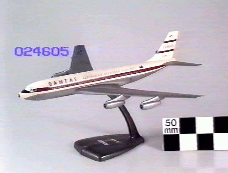 1:72 scale model of a QEA Boeing 707, donated to the Museum by Qantas Empire Airways in 1959.