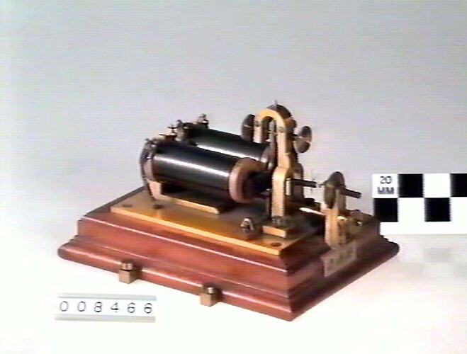 Relay of Siemens pattern used at telegraph receiving stations, particularly those operating on long connecting lines. Often signals received over long lines were too weak to operate the receiving instruments directly so the relay served as a very sensitive switch to connect a local battery to the receiving instruments.