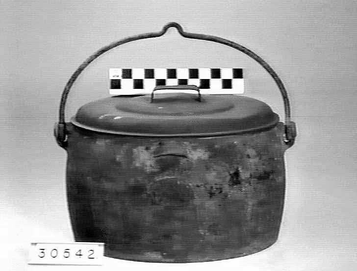 Oval iron boiler with lid and handle, capacity four gallons (15 litres). Made by T. & C. Clark & Co., Wolverhampton, England.
