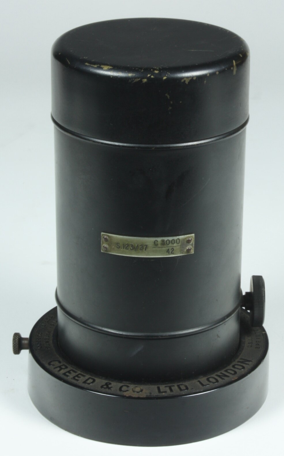 On base: "CREED & CO., LTD. LONDON TYPE 1927 RELAY" On cylinder: "S.123/27 C3000 42"