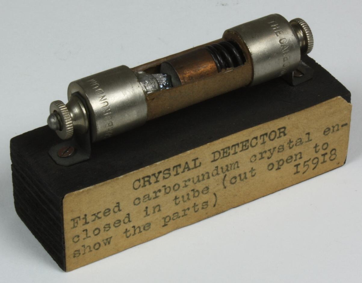Crystal detector, fixed type. Made by the Carborundum Co., Niagara Falls, New York, U.S.A. Used in radios.