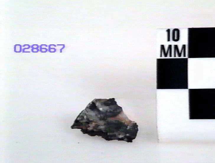Small piece of brownish material with lighter coloured inclusions. Accompanied by label from missing display board.