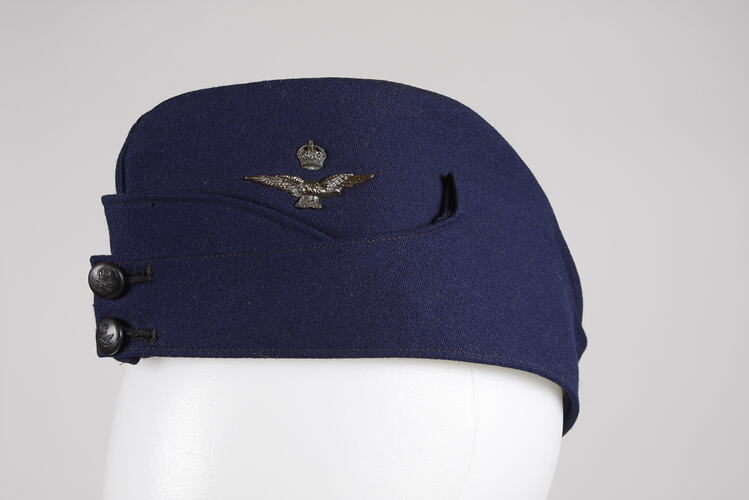 World War II RAAF officer's blue wool forage cap with eagle insignia.