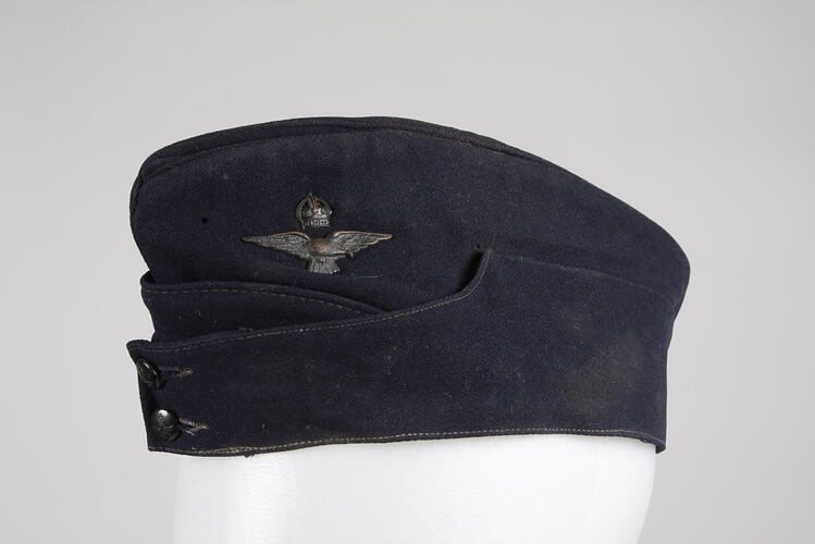 World War II RAAF officer's blue wool forage cap with eagle insignia.
