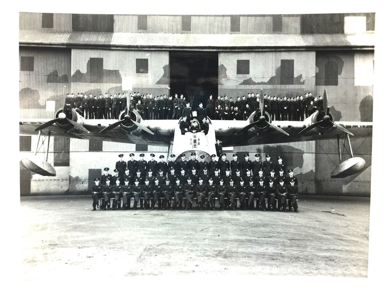 A copy of the photograph is held at the Australian War Memorial, described as 'Group portrait of aircrew of 461 Squadron RAAF, with a Sunderland aircraft outside the slipway hangar' (P01520.004). The record names many of those depicted, including Graeme (sic) Conning. The photograph was donated by the widow of Graham Conning, who served in the Squadron.