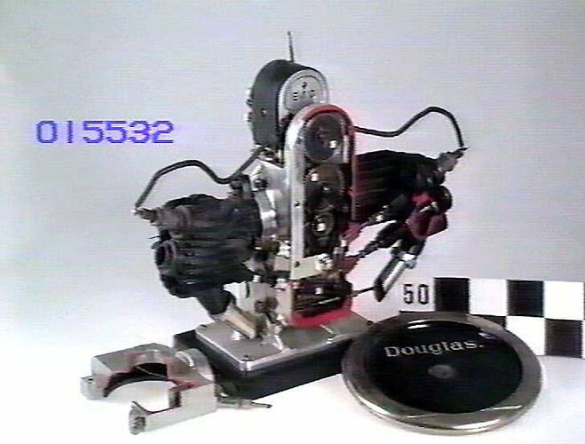 This sectioned twin-cylinder engine was built in about 1925. It was donated to the Museum by the local Douglas agent, Turner Bros of 343 Swanston Street, Melbourne in March 1925.