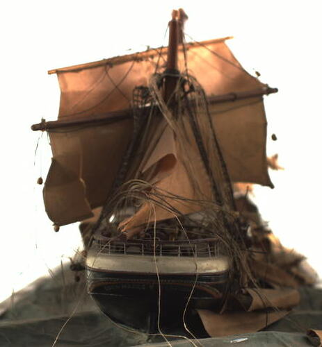 This model was made by John Merriman of Melbourne who served his apprenticeship on this vessel and was on board during the dismasting. The model was subsequently acquired for the Museum through the composer Percy Grainger in 1936. Grainger had a long-standing interest in sailing ships.
