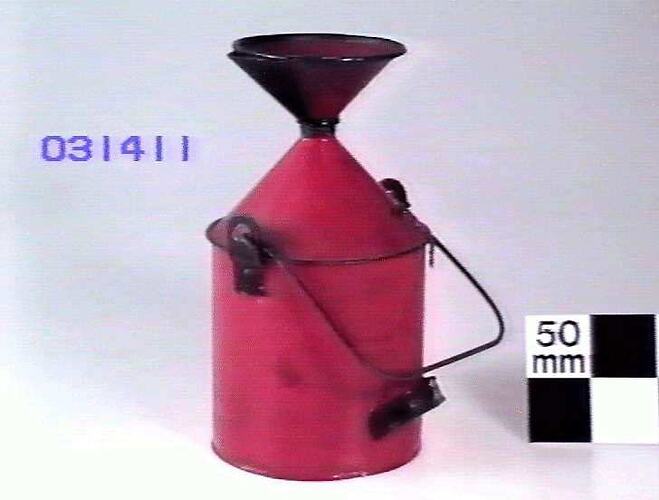 Lamp reservoir for a Harcourt pentane lamp, which was used to establish a flame standard at Melbourne Observatory.