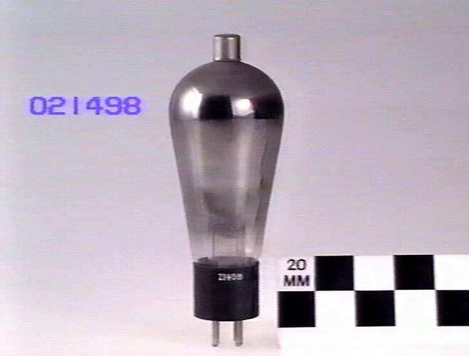 Mercury vapour rectifier designed for use as one of a pair in a full-wave rectifier for transmitters requiring up to 3 kV at up to 250 mA. 2.5 volt directly heated cathode.