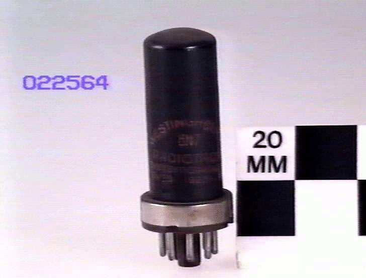 With a 300 volt supply this valve could produce an output of 10 watts. It was designed to be operated with zero bias which eliminated the need for a low impedance bias supply and the distortion caused by the commencement of grid current. 6.3 volt indirectly heated cathode.