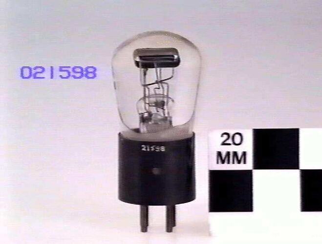 Triode designed for operation from a 2 volt accumulator or dry batteries. A triode with high plate resistance intended for use as a resistance-coupled audio amplifier or anode-bend detector. 2.0 volt directly heated cathode.