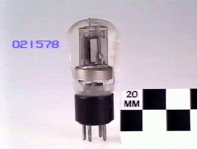 One of the first indirectly heated screen grid (tetrode) tubes produced in England. Indirectly heated tubes made the operation of radios from the AC mains possible.