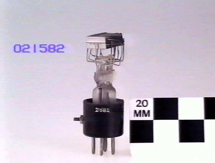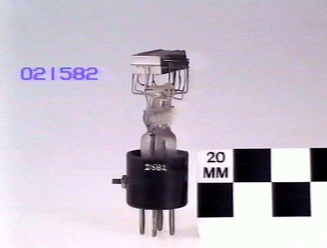 4 pin European style base with side terminal; glass bulb removed. On display block with ST 21581
