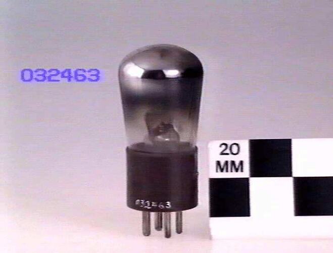 General purpose triode used in battery powered radios in the late 1920s. It had an amplification factor (mu) of 15, somewhat higher than the 9 of the common types of its day. 4 V directly heated cathode, manufactured by Philips, Holland, and used as a class A amplifier.