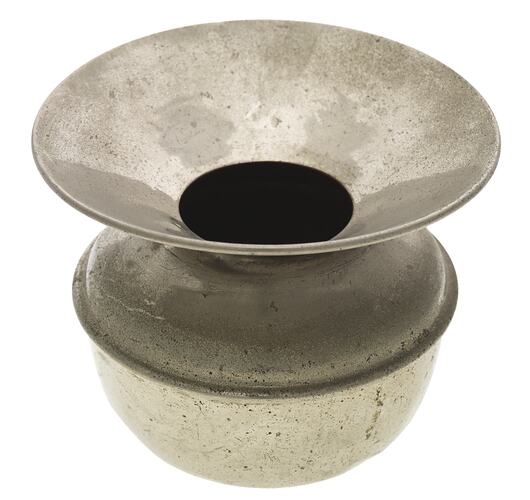 Hand spittoon, possibly from a mobile army dental unit. Nickel plated. The spittoon is likely to have been used around the late 1930s in a dental context.