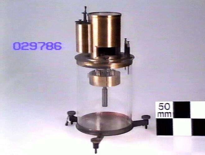 Thomson type quadrant electrometer, with replenisher and auxiliary electrometer, circa 1900. Used at Melbourne Observatory.