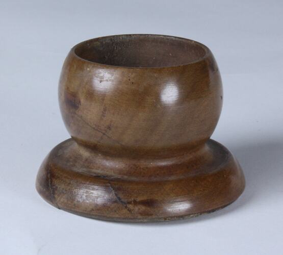 Egg cup, turned. Made of Native Cherry (exocarpus cupressiformis) (santalaceae). Made by Edwin ault within the period 1900-1950.