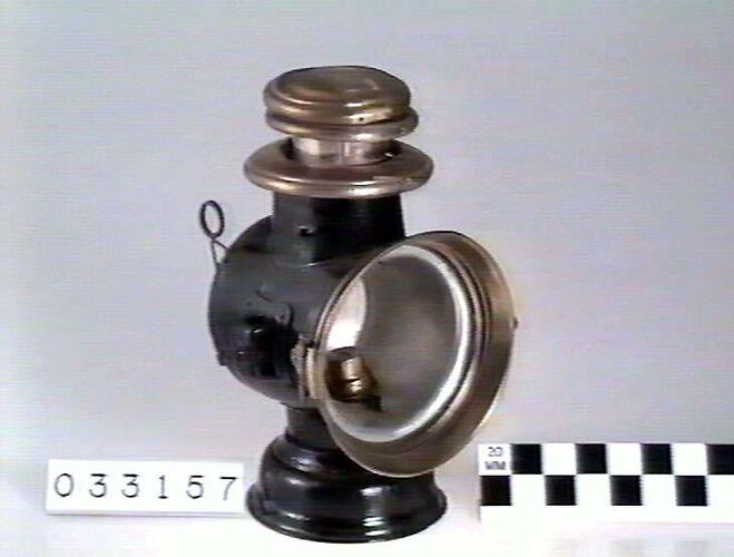 Gas operated driving lamp made by Dietz, New York, USA, circa 1908. It was used on horse-drawn and motor vehicles and was patented on 26 January 1897, 25 September 1906, and 22 January 1907.