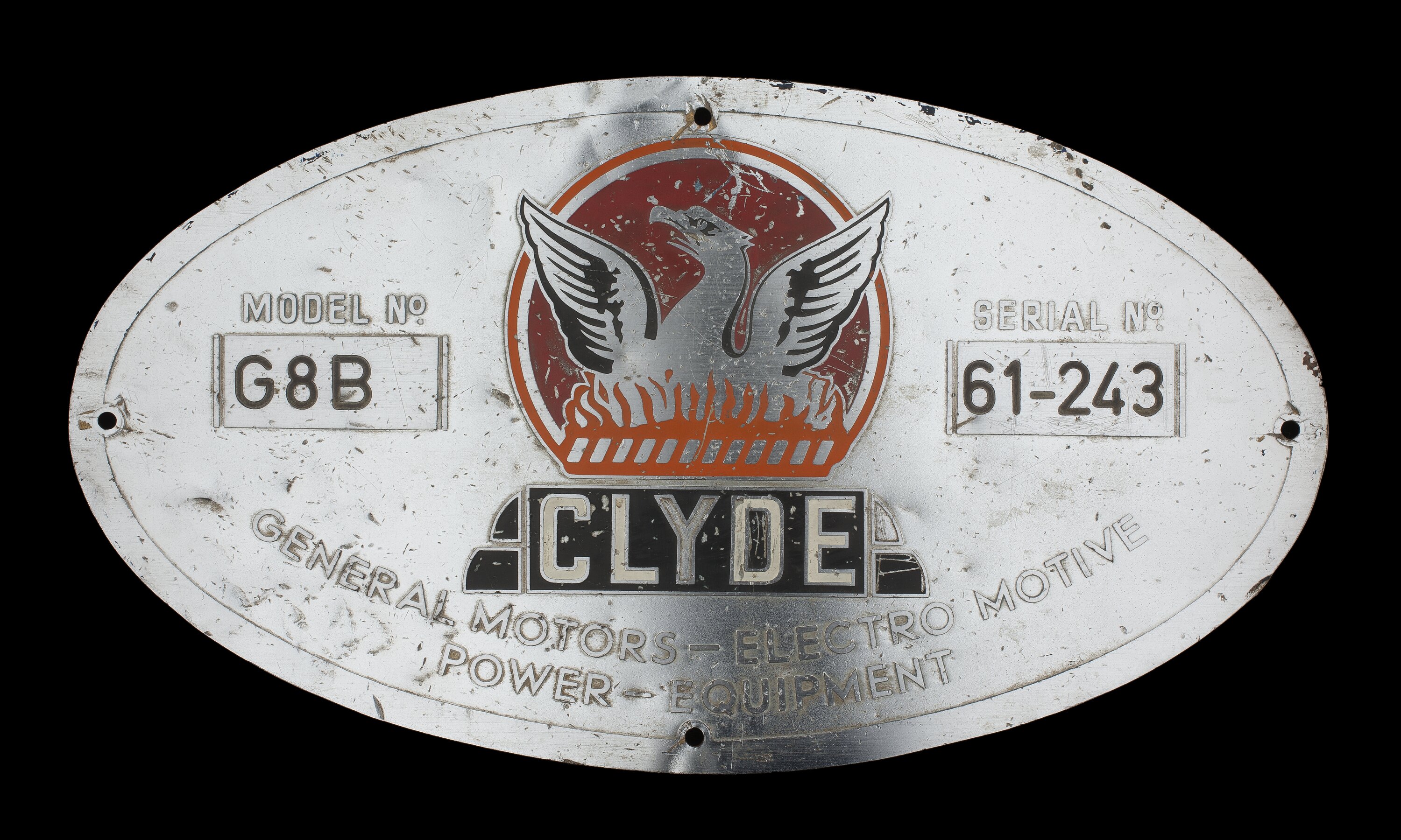 Clyde. General Motors - Electro Motive. Power - Equipment. Model No G8B Serial No. 61-243.