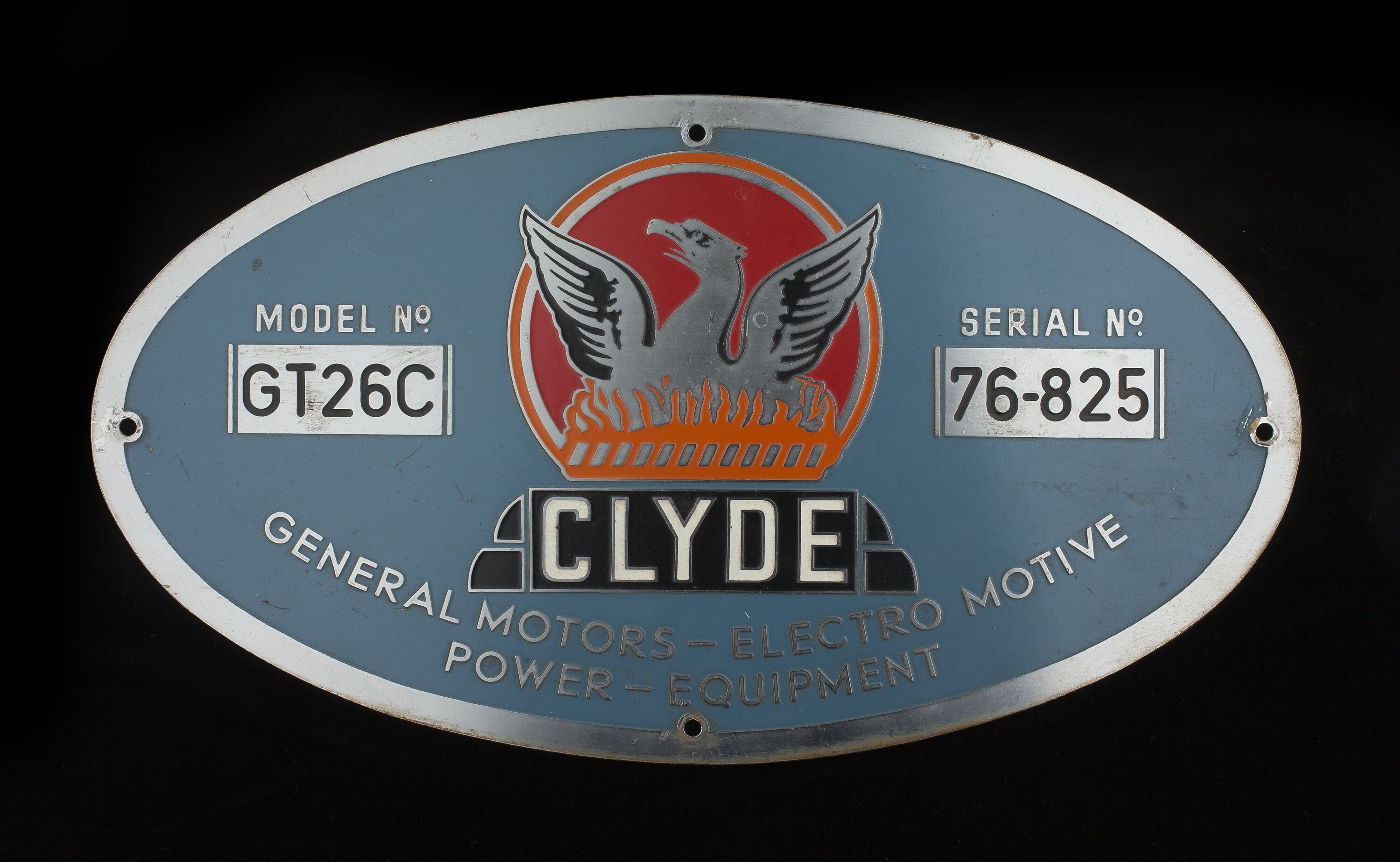 Clyde. General Motors - Electro Motive. Power - Equipment. Model No G26C Serial No. 76-825.